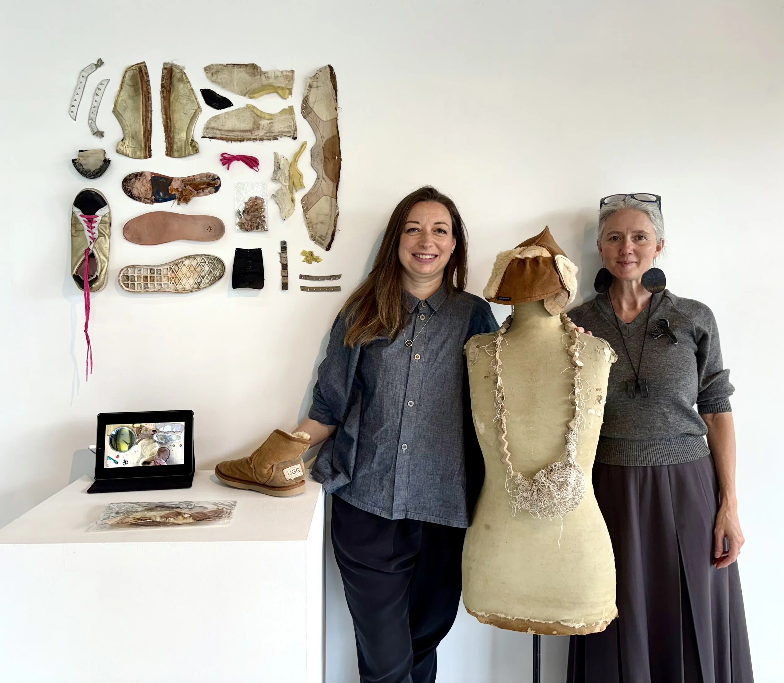 I had been wanting to use a pair of my own shoes for our ‘this is not a shoe’ activity for a while. At the time, I upcycled them into a hat (taking inspiration from Schaparelli’s surreal shoe hat). I was working on a teaching collaboration with the company that produces them. Pennie made the soles into a necklace and earrings, and we exhibited them at the Uncertain Endings Melbourne Fashion Week exhibition in 2025, curated by colleagues Julia English and Remie Cibis. I loved every part of the process, which led to this exhibition for the Melbourne Fashion Festival’s Independent program in 2026.