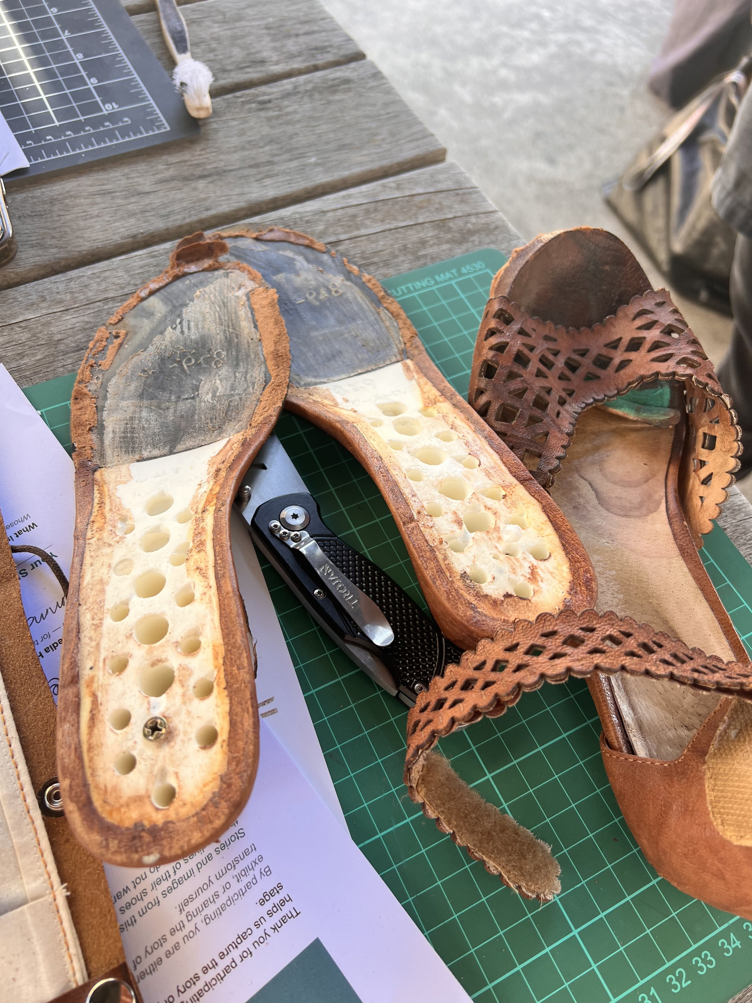 What did you make from your shoes, and were there any materials left over?